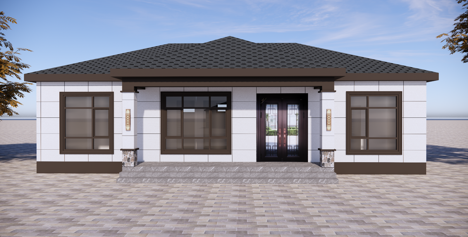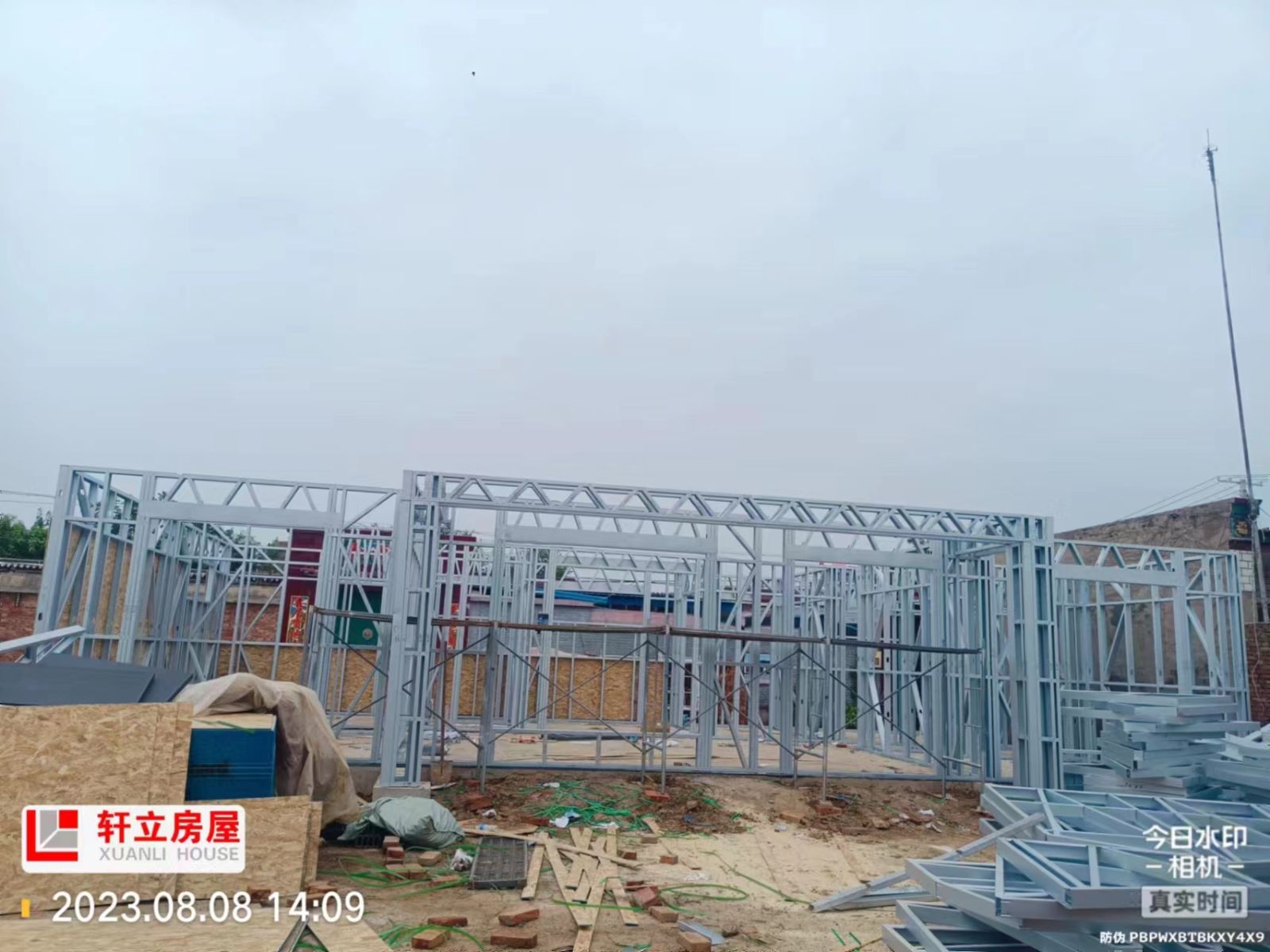 由石家莊軒立集成房屋有限公司承建的衡水市武強(qiáng)縣東郭莊村田府一層輕鋼別墅,